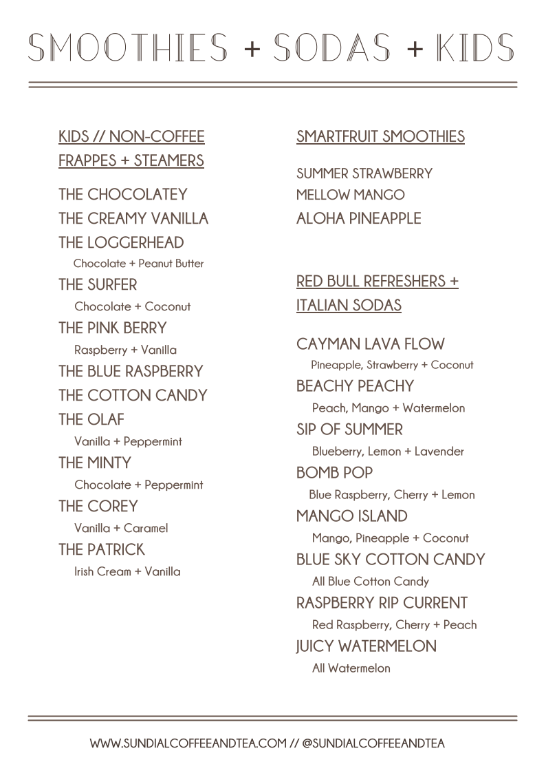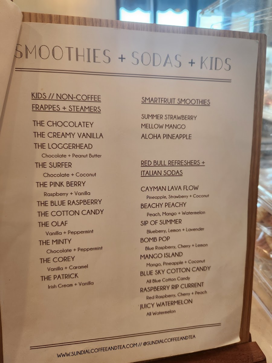 Welcome to Sundial Coffee and Tea, a charming gem in Surf City, NC, where each sip is infused with warmth and community spirit. Located at 104 Charlie Medlin Dr, this delightful café offers a diverse menu that blends traditional favorites with unique twists. Indulge in their Flavored Cappuccinos or savor the lightness of the Honey Almond Latte. For tea enthusiasts, the Elderberry Hibiscus Iced Tea is a must-try, providing a refreshing escape.